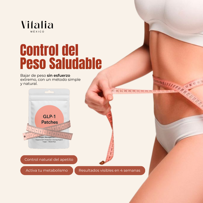 Precauciones de uso: Este producto es de uso exclusivamente externo. No reutilices los parches y, una vez abierto, utilízalo lo antes posible. Mantén el producto fuera del alcance de niños menores de 18 años. No lo utilices si eres alérgico(a) a alguno de sus ingredientes. Aplica solo un parche a la vez por un máximo de 8 horas continuas y rota la zona del cuerpo en la que lo colocas con cada uso. No lo apliques sobre heridas, piel sensible, irritada o lesionada. Evita el contacto con los ojos y asegúrate de lavar bien tus manos después de usarlo. Suspende su uso si presentas irritación o una reacción alérgica y consulta con un profesional de la salud. No lo utilices si estás embarazada, en periodo de lactancia o tomando medicamentos sin antes consultar con tu médico. No combines el parche con fuentes de calor directo, como almohadillas térmicas, ya que esto puede alterar su efectividad. Este producto no ha sido evaluado por la FDA ni por autoridades sanitarias equivalentes. No está destinado a diagnosticar, tratar, curar o prevenir ninguna enfermedad. No contiene GLP-1 sintético ni es un medicamento agonista de GLP-1.